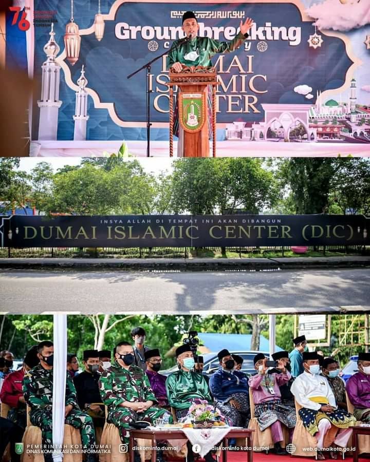 DUMAI - Walikota Dumai, H. Paisal, SKM, MARS menghadiri Groundbreaking Ceremoni Pembangunan Dumai Islamic Center (DIC), yang berlokasi di Halaman DIC, Jl. H.R. Soebrantas, Jumat (27/08).