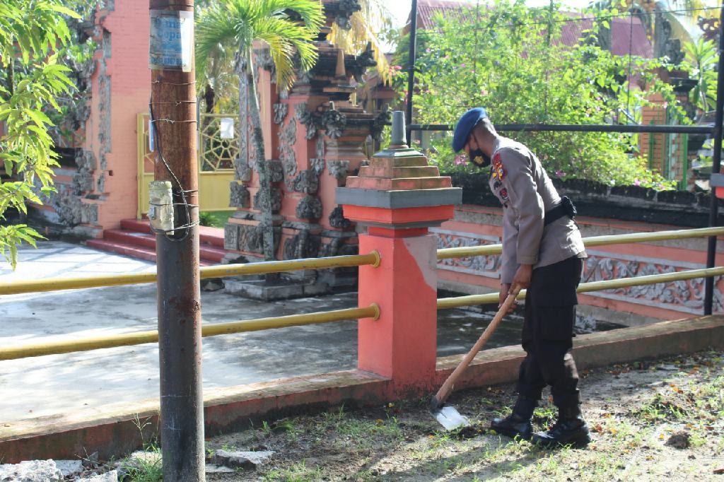 Bakti sosial dalam bentuk membersihkan lingkungan tempat ibadah ini merupakan salah satu rangkaian kegiatan menyambut HUT ke-76 Korps Brimob Polri.