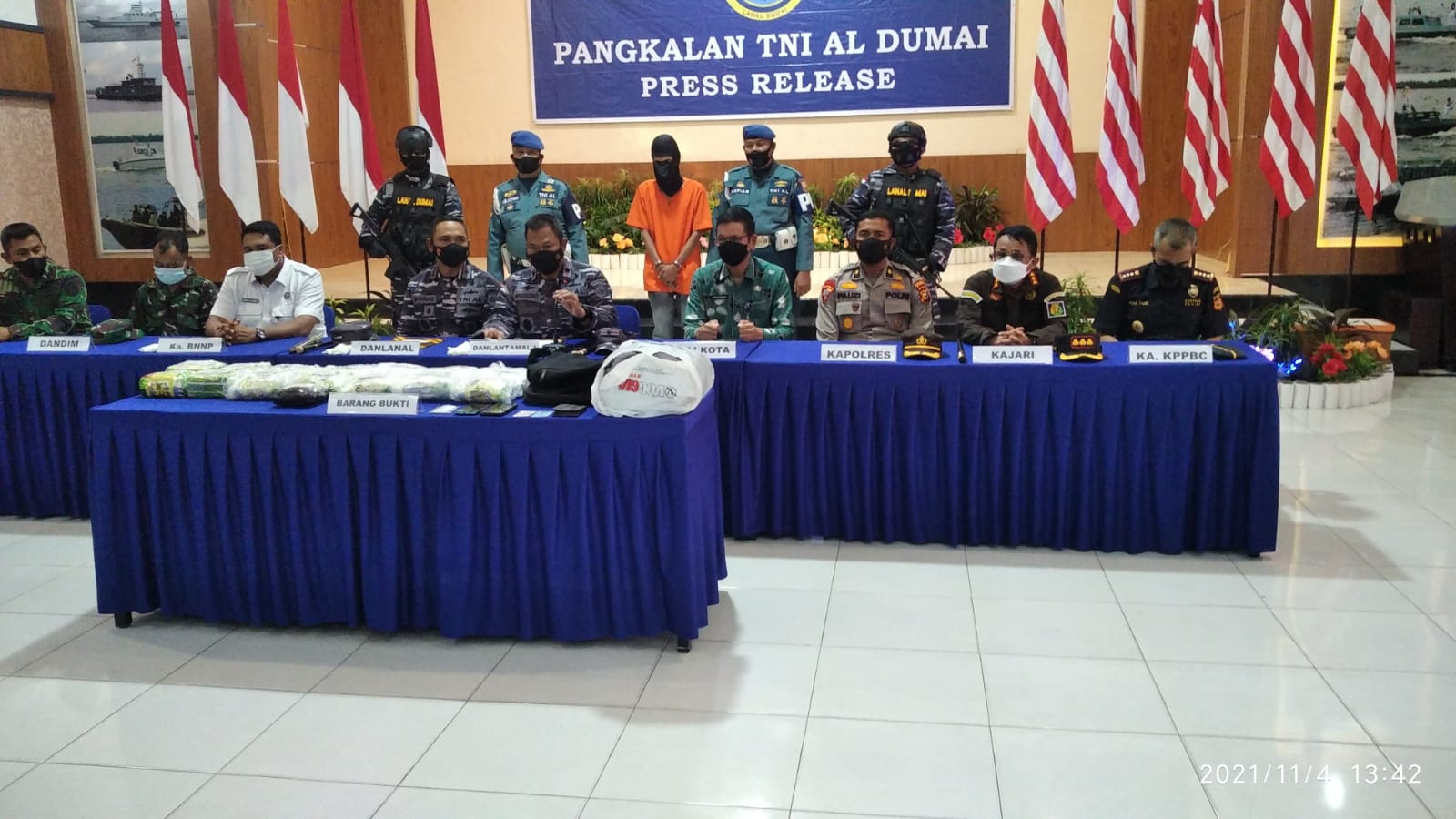 Press Release Penyelundupan Narkoba Bertempat di Aula Mako Lanal Dumai