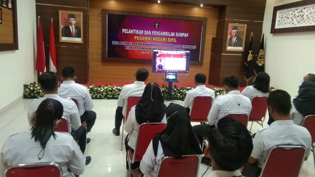 Virtual Refleksi Akhir Tahun 2021 Kemenkumham di LPKA Klas II Pekanbaru.
