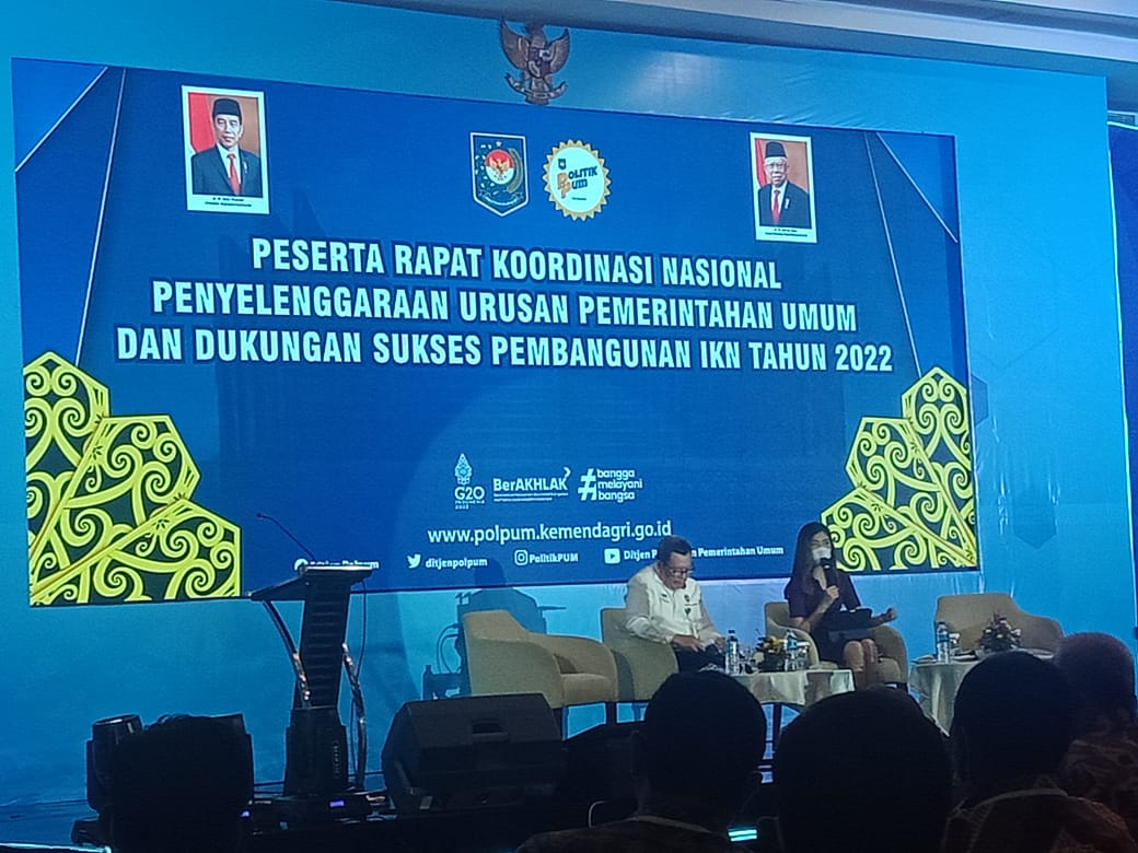 INHU - Pemerintah Kabupaten Indragiri Hulu (Inhu), Riau mendukung pembangunan ibu kota negara (IKN) di Balikpapan. Dukungan itu disampaikan langsung Bupati Inhu, Rezita Meylani Yopi melalui Kepala Badan Kesbangpol, Bambang Indramawan saat menghadiri rakornas di Balikpapan, 29-30 Maret 2022 yang lalu.