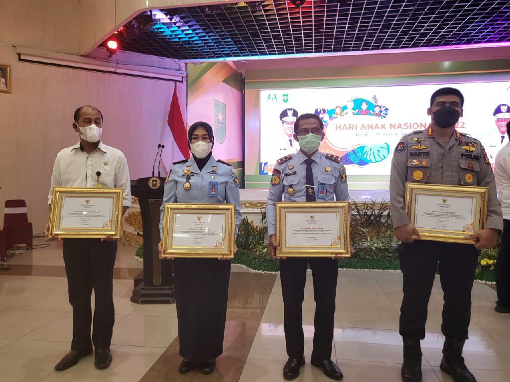 Lembaga Pembinaan Khusus Anak Klas II Pekanbaru, bersama Balai Pemasyarakatan Klas II Pekanbaru memperoleh penghargaan dari Pemerintah Provinsi Riau sebagai Organisasi / Lembaga Pemerintah yang berdedikasi dalam pengisian SIMEP-PA KPAI tahun 2022.