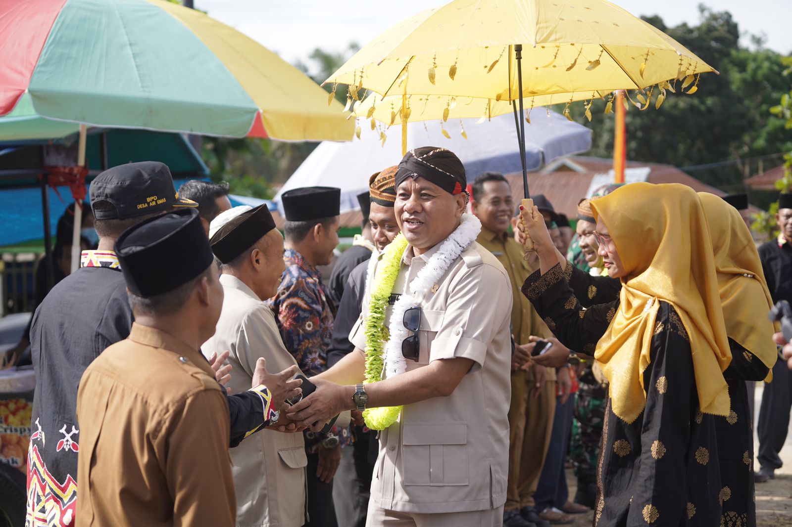 KUANSING - Warga Desa Air Mas , menyambut antusias kehadiran Plt Bupati H Suhardiman Amby saat menghadiri HUT ke 30 desa tersebut , Senin 21/11/22 .