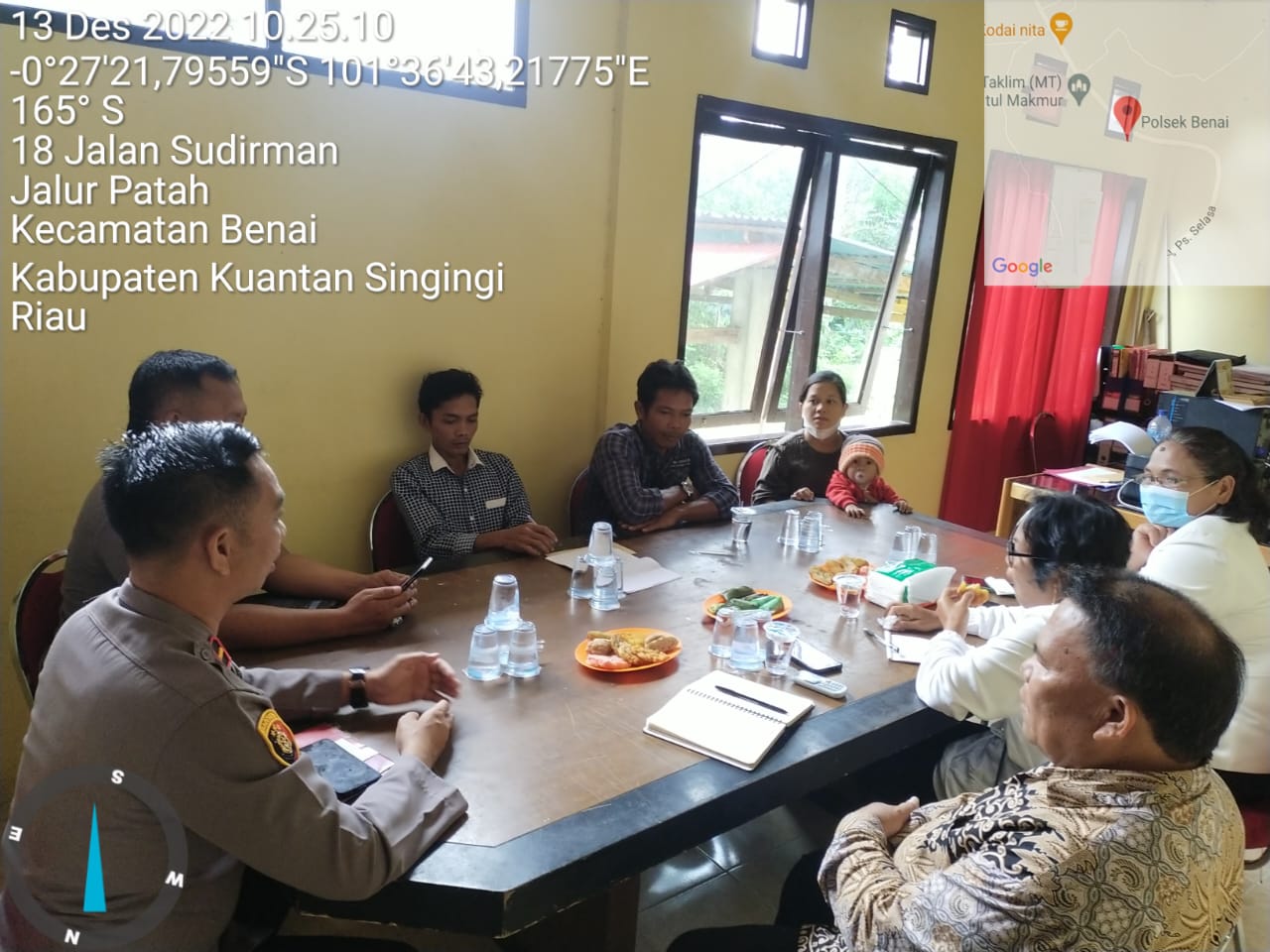 Kegiatan pertemuan dan koordinasi di pimpin Kapolsek Benai Ipda A. Candra Widodo, S.H dengan didampingi Kanit Intelkam Aipda Juni Faisal dan turut hadir pihak gereja yang hadir Gereja GPDI Pantekosta PT. Duta Palma Nusantara Pendeta Jhon Allow, S. Th, Gereja HKBP Zion PT. Duta Palma Nusantara Pendeta Fitri Silitonga, S. Msi Gereja Katholik Santo Petrus Alkantara Desa Geringging Baru, Ketua Stasi Jatmiko Pengurus Aloysius Subagio, Gereja GPIB Marturia Desa Langsat Hulu Penatua Tiodora Silaban, Gereja GPIB Sumber Kasih dan Gereja GPIB Elim Diaken Sulistiani.