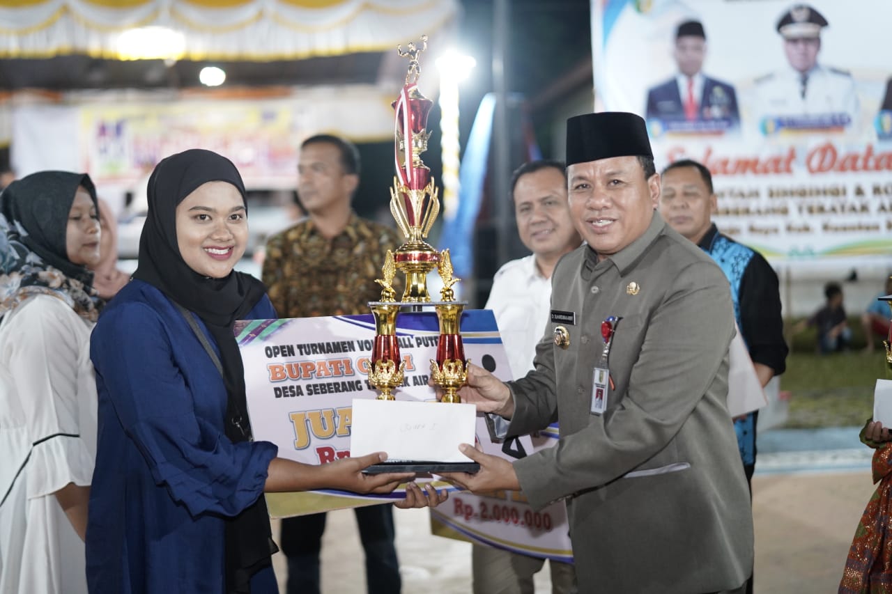 Setelah pelantikan Pj Kepala Desa, diiringi juga dengan acara penutupan turnamen Volly Ball Putri Bupati Cup I.
