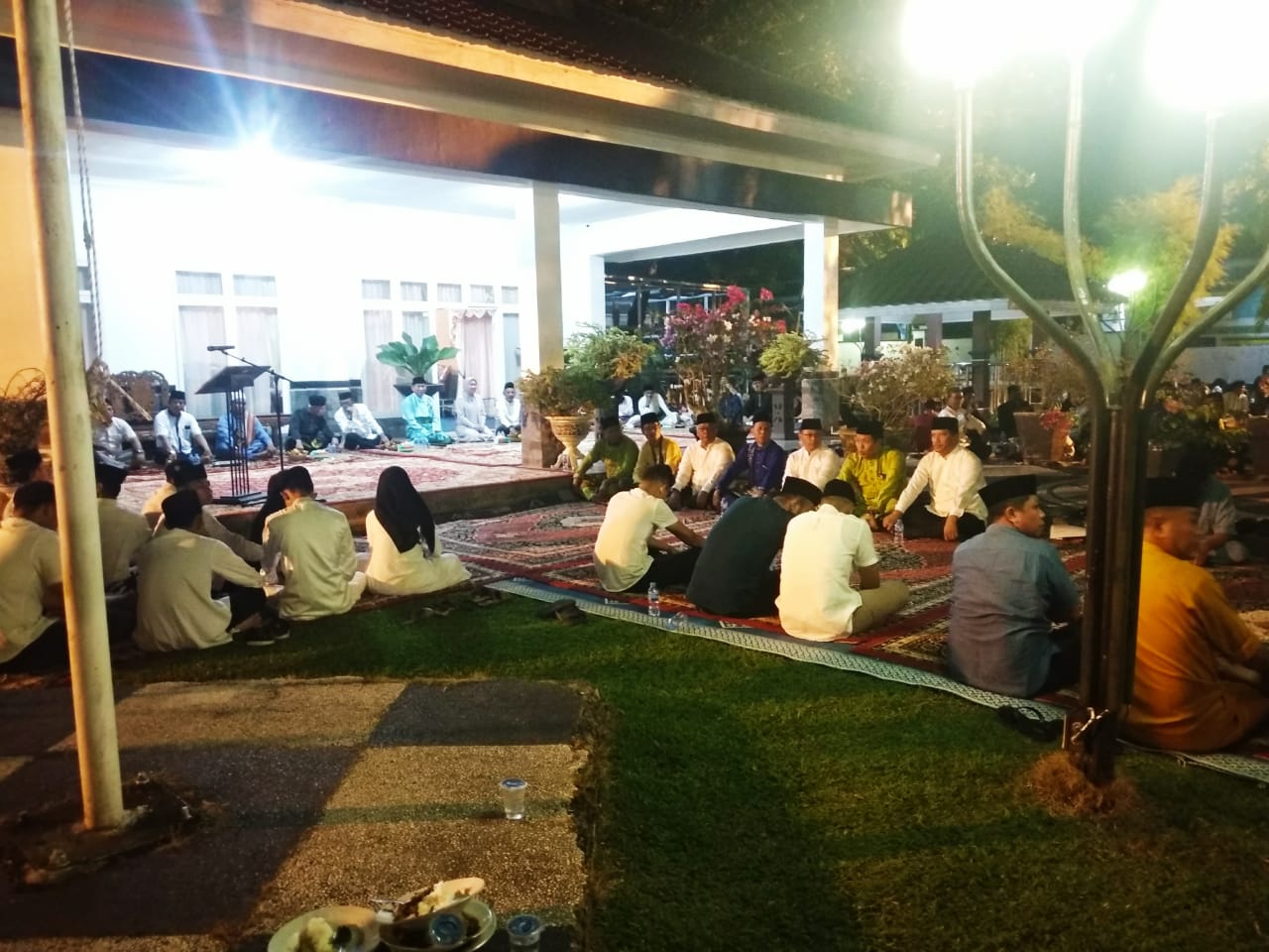INHU - Kediaman Dinas Bupati Indragiri Rezita Meylani, Jalan Ahmad Yani, Rengat, dipadati warga masyarakat, Selasa (1/8/2023) malam. Mereka datang untuk hadir dalam acara malam syukuran dan doa bersama pasca disahkannya penetapan Hari Jadi dan RTRW Kabupaten Indragiri.