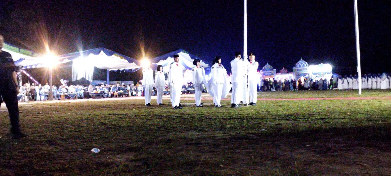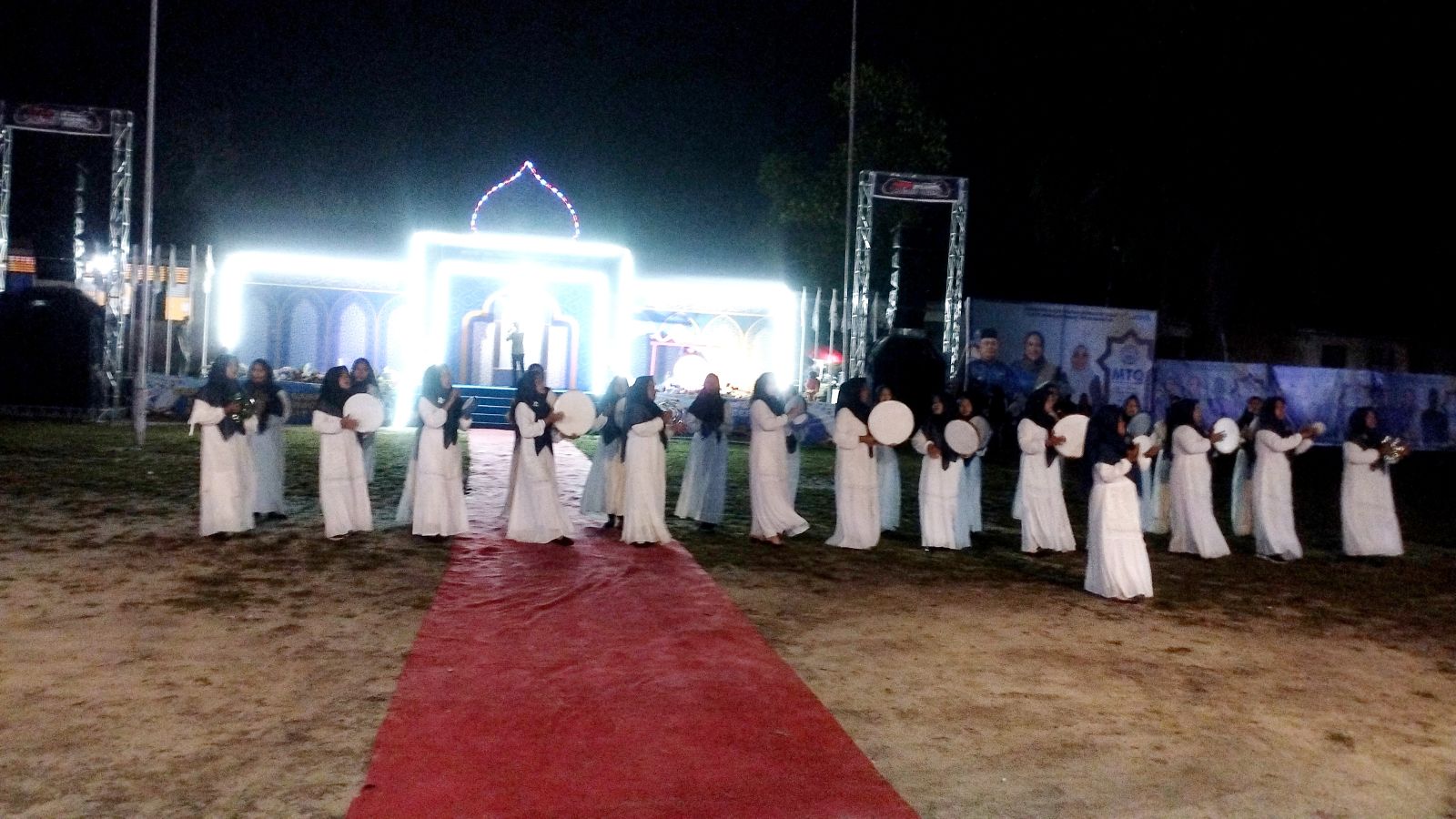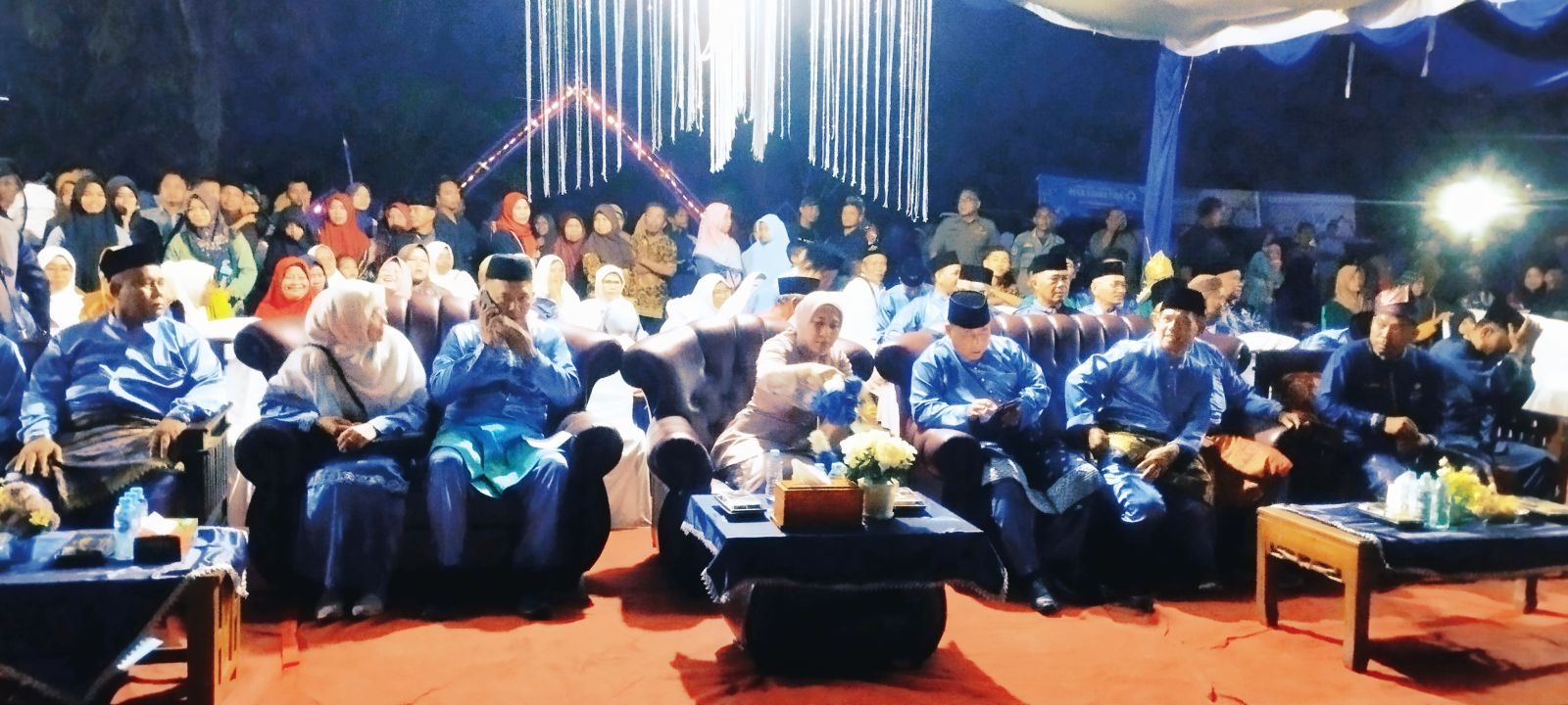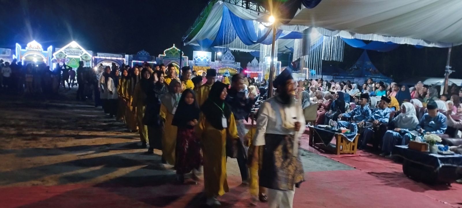INHU - Walau sebelumnya sempat terjadi turun hujan, Bupati Inhu Rezita Meylani Yopi, resmi membuka MTQ tingkat Kecamatan Rengat Barat ke-25 yang berlangsung di arena lokasi MTQ desa Danau Tiga, Senin malam 9 September 2024 dimulai sekira pukul 20.30 Wib.
