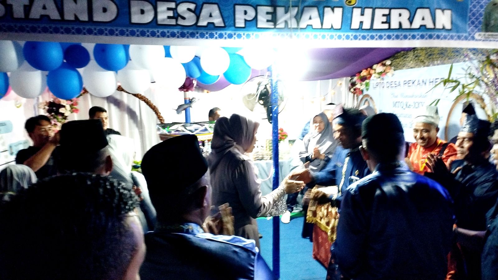 Kemudian selanjutnya Bupati Rezita berkenan meresmikan Stand Bazar MTQ yang didampingi oleh Kades Danau Tiga serta diikuti para pejabat lainnya yang mengambil posisi di stand bazar Desa Pekan Heran.