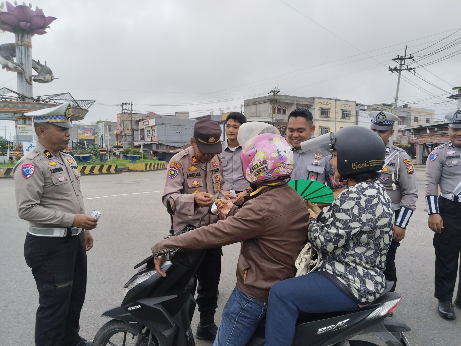 Kapolres Indragiri Hulu, AKBP Fahrian Saleh Siregar, S.I.K., M.Si., melalui Kasi Humas Polres Inhu, Aiptu Misran, S.H., menyampaikan bahwa kegiatan ini merupakan bentuk penghargaan kepada masyarakat yang telah mematuhi aturan lalu lintas. “Kami ingin memberikan motivasi kepada para pengendara agar selalu melengkapi kelengkapan berkendara, seperti menggunakan helm, memasang spion, dan memiliki Tanda Nomor Kendaraan Bermotor (TNKB) yang sah. Dengan apresiasi ini, kami berharap kesadaran akan pentingnya keselamatan di jalan semakin meningkat,” ujarnya.