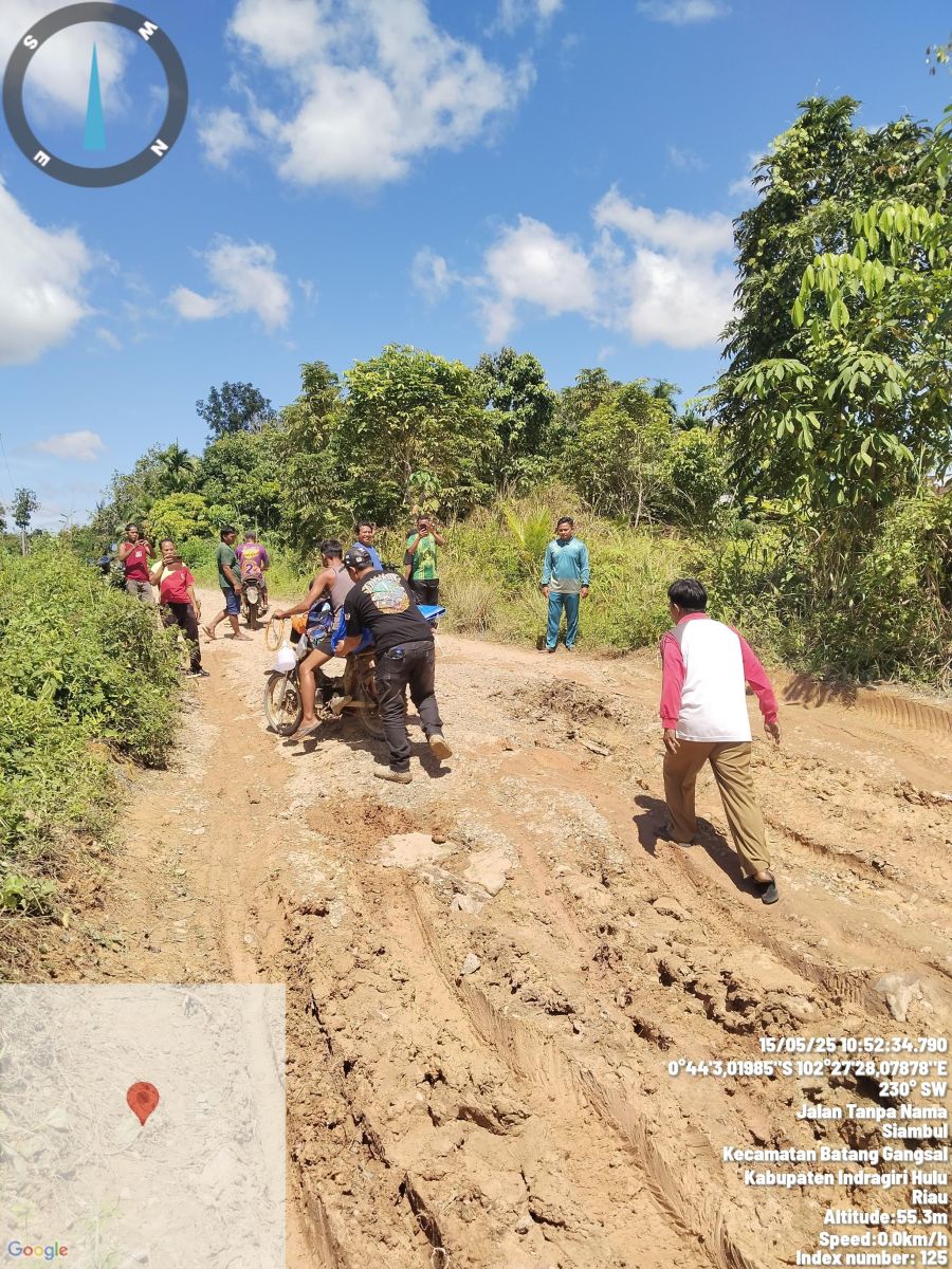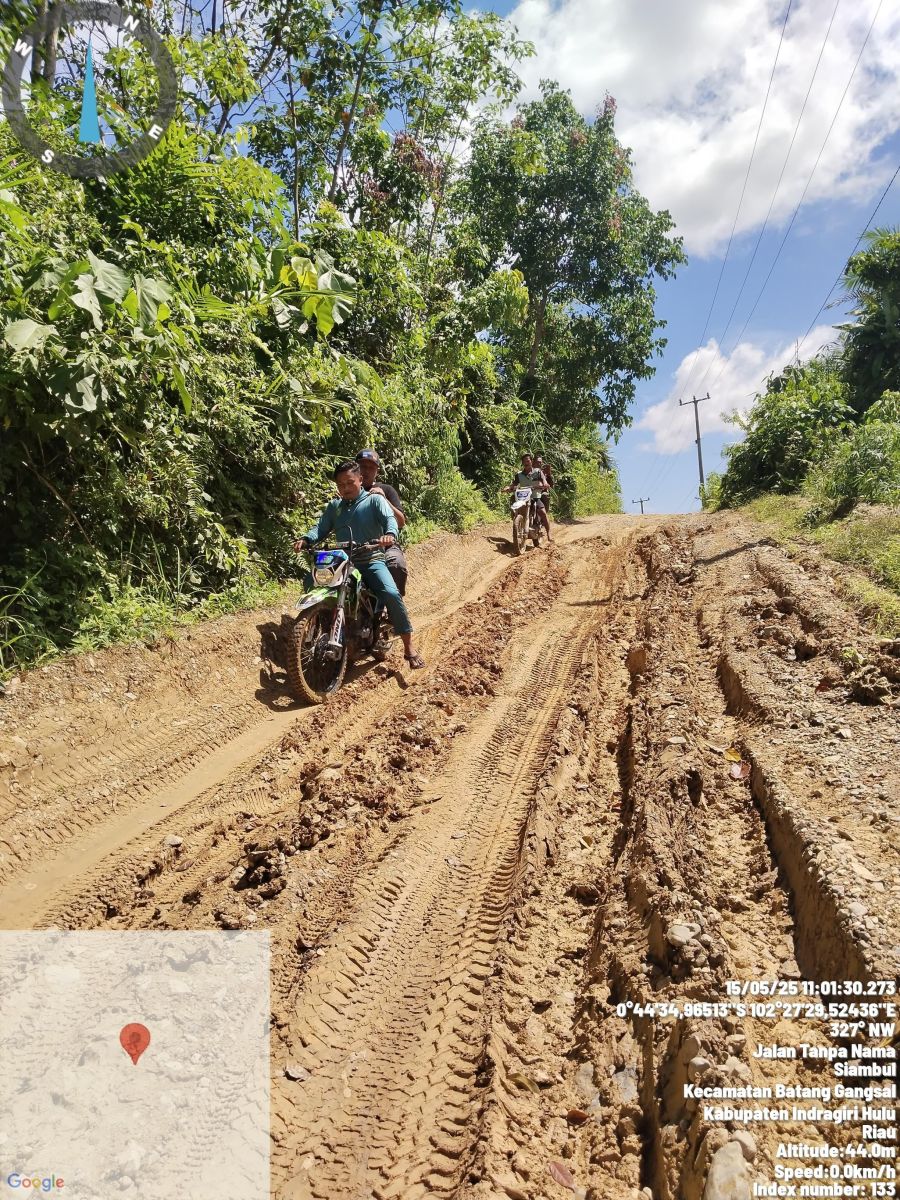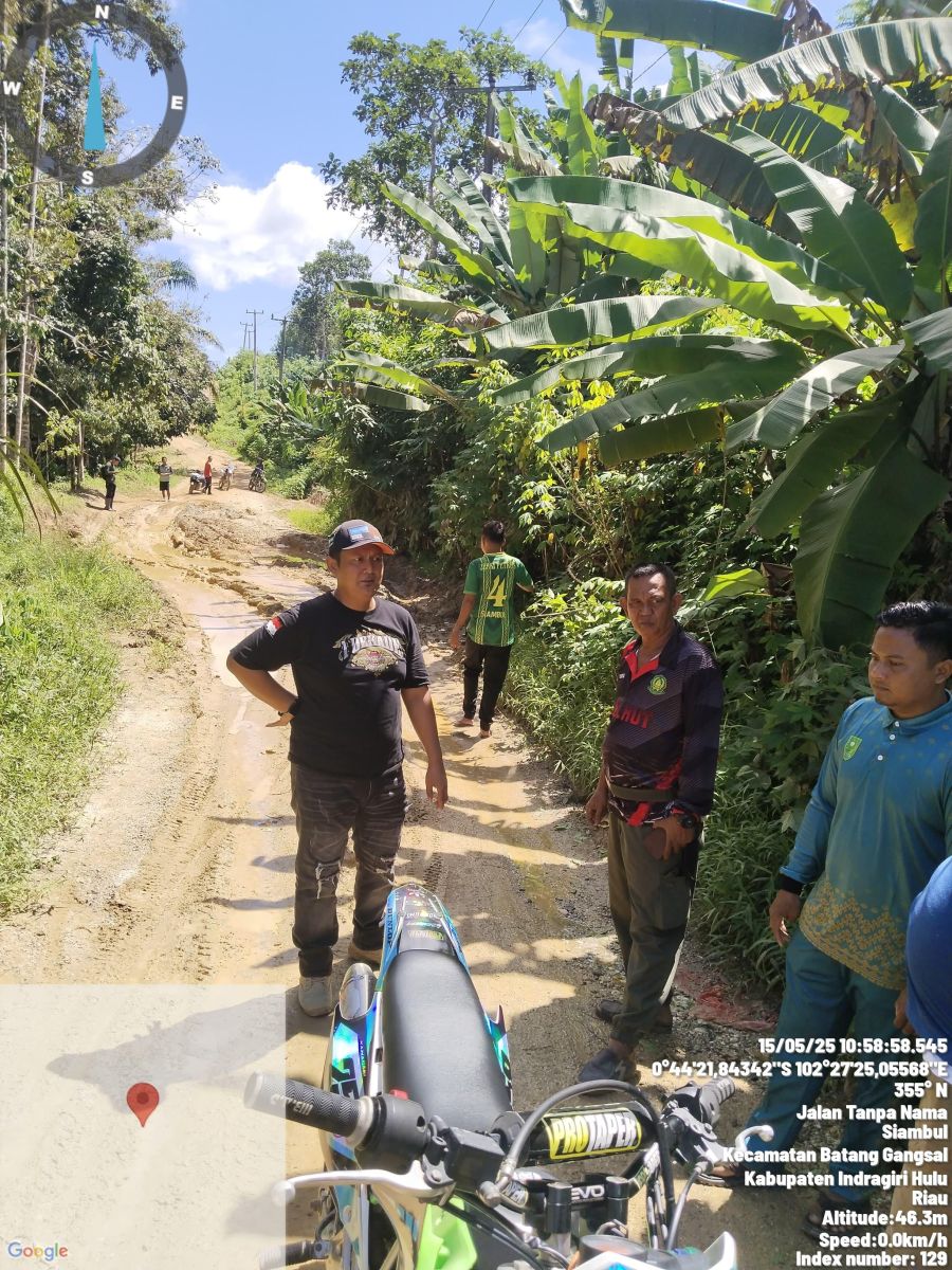 Indragiri Hulu - Plt Camat Kecamatan Batang Gansal, Hijrah Saputra S.Sos, melakukan monitoring ke sejumlah desa pada Kamis, 15 Mei 2025. Salah satu kegiatan yang dilakukan adalah memantau kondisi jalan yang rusak parah di Desa Siambul dan Desa Rantau Langsat.