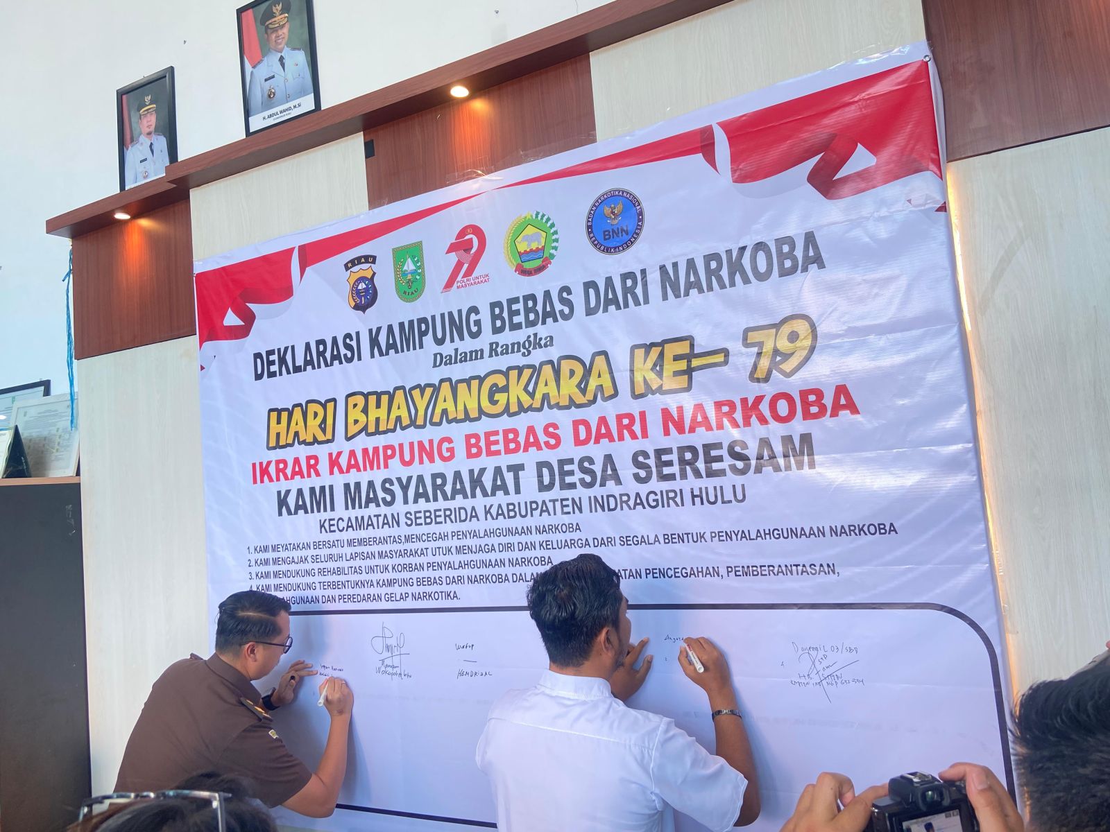 Desa Seresam Siap Jadi Role Model Desa Bebas Narkoba di Riau!. Berikut bunyi Ikrar Kampung Bebas dari Narkoba Kami, Masyarakat Desa Seresam Kecamatan Seberida, Kabupaten Inhu: