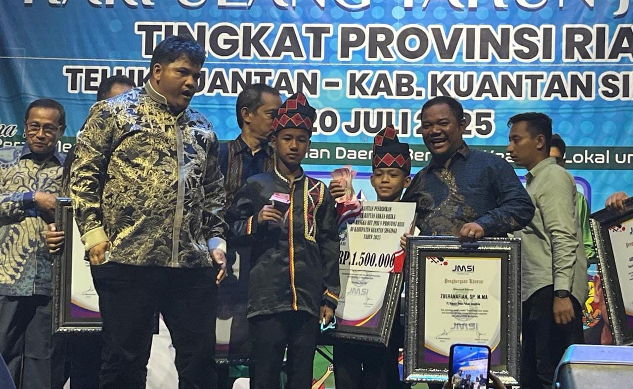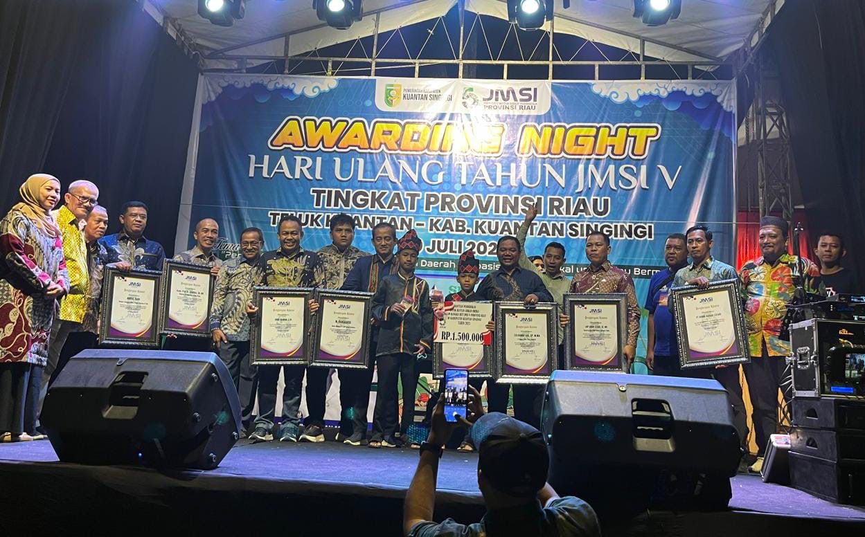Kuansing - Momen haru dan penuh kepedulian mewarnai malam puncak perayaan HUT ke-5 Jaringan Media Siber Indonesia (JMSI) tingkat Provinsi Riau, Minggu malam (20/7/2025), yang digelar megah di Tepian Datuk Bandaro Lelo Budi, Kuantan Singingi.