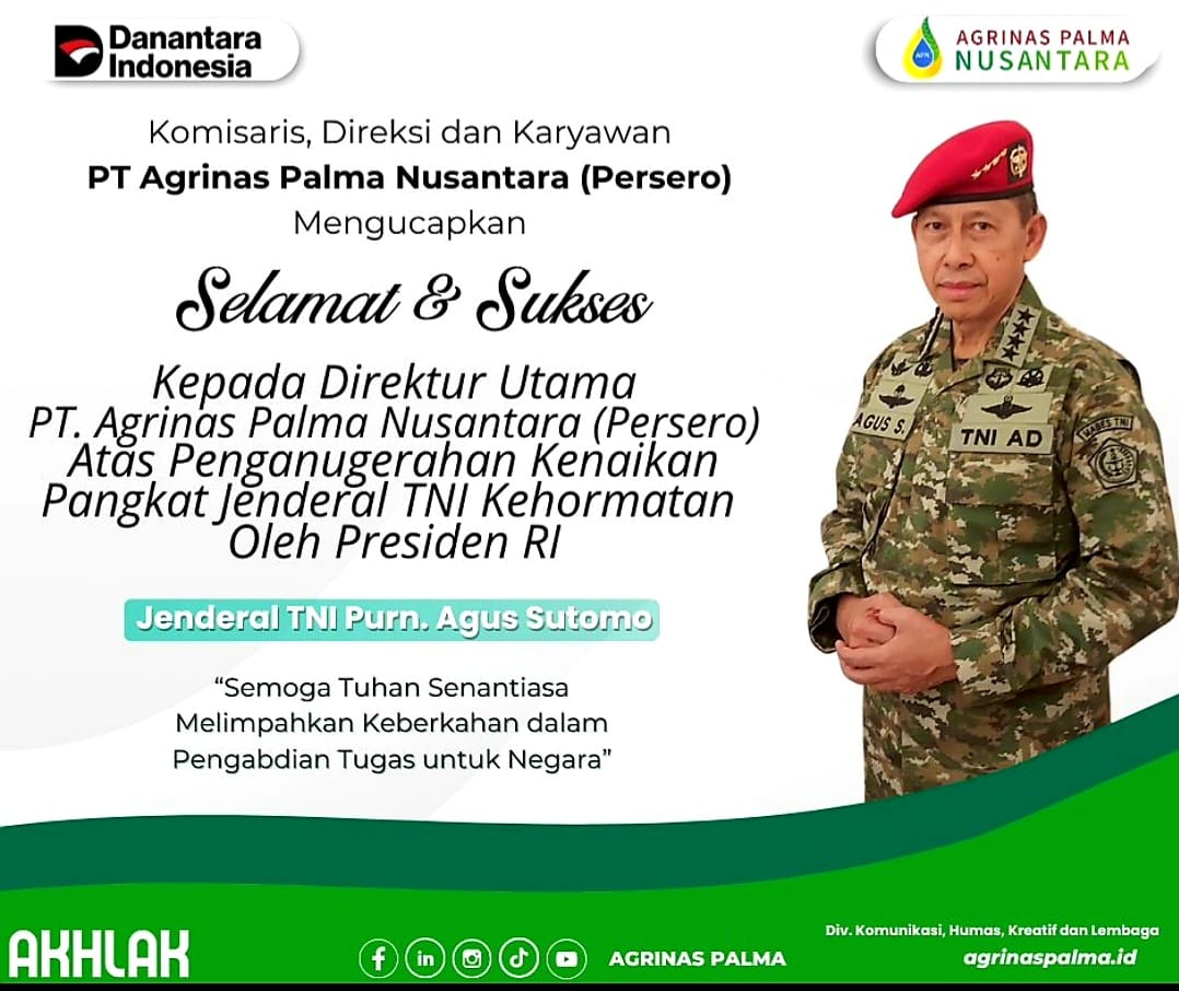 Letjen TNI (Purn) Agus Sutomo, yang kini menjabat Direktur Utama PT Agrinas Palma Nusantara (Persero), lahir di Klaten, Jawa Tengah, 14 April 1960. Lulusan Akademi Militer 1984 dari kecabangan Infanteri (Kopassus) ini menempuh berbagai pendidikan militer strategis, termasuk Seskoad dan Lemhannas RI.
