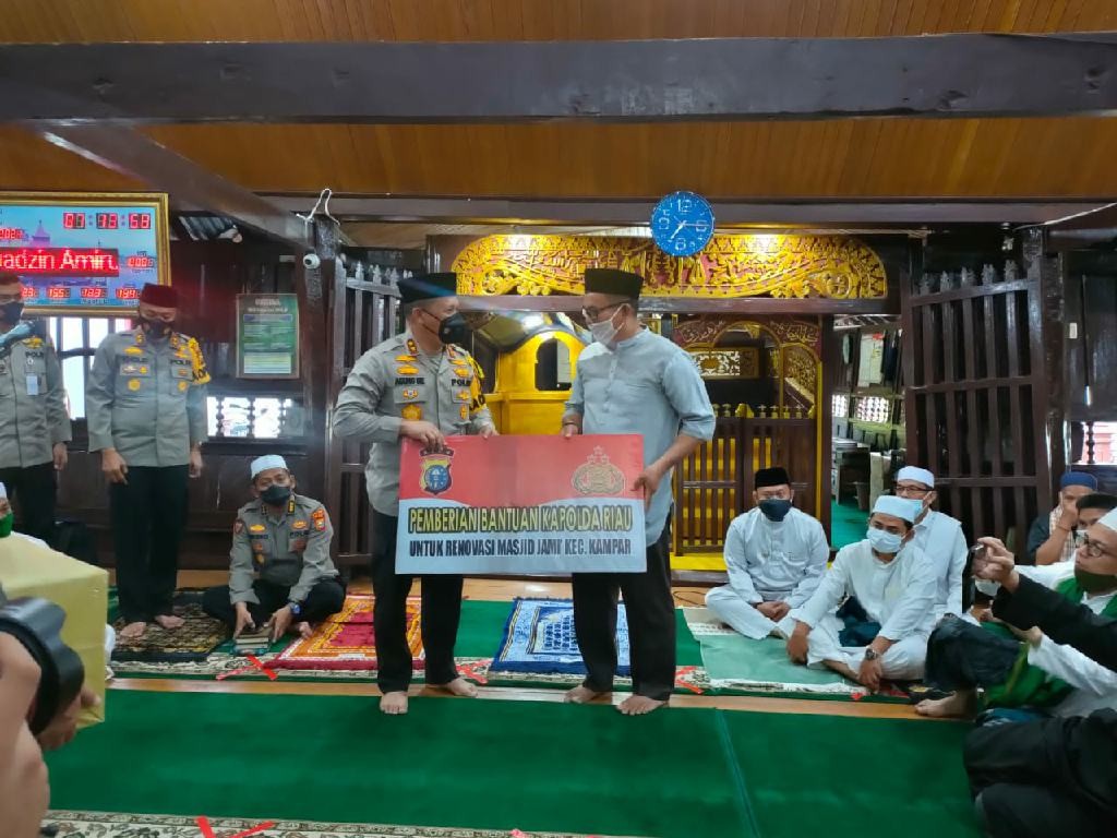 Usai menyampaikan sambutannya, Kapolda Riau menyerahkan Bantuan untuk Renovasi Masjid Jami' Air Tiris, yang diserahkan secara simbolis kepada Pengurus Masjid Jami' Air Tiris, bantuan berupa Kubah Menara Masjid dan 100 Al Qur'an.