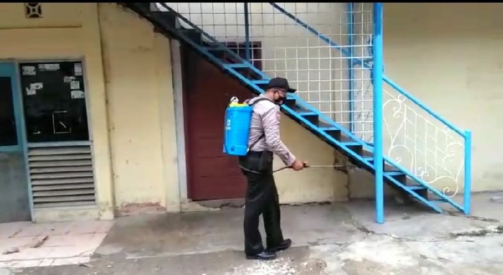 Kegiatan Penyemprotan Cairan Disinfektan tersebut, dilakukan oleh Personil Bhabinkamtibmas Tangkerang Barat Aiptu Desril dan Bhabinkamtibmas Tangkerang Tengah Aipda Marawan, SH, selaku Personil Posko Covid- 19 dari Polsek Bukit Raya.
