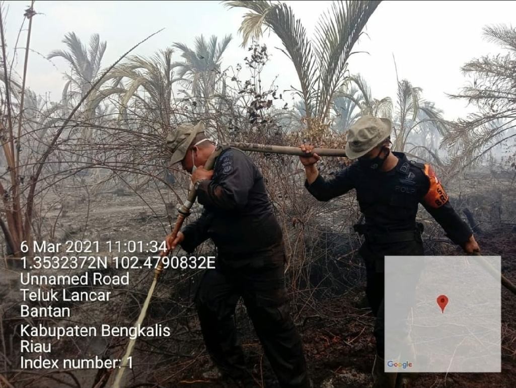 Dansat Brimob Polda Riau turun langsung ke lokasi kebakaran Sabtu (06/03/2021).