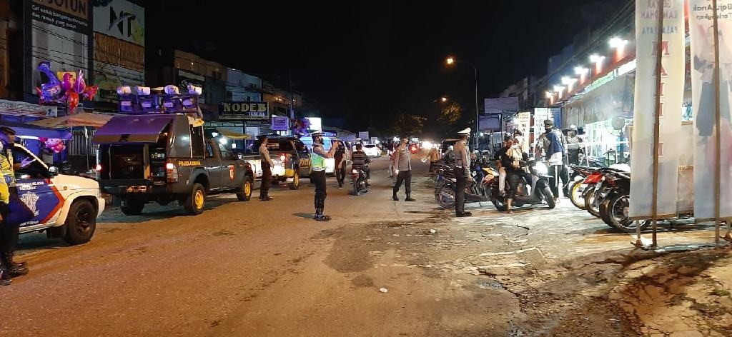 Patroli skala besar pendisiplinan prokes oleh Polres Kampar.