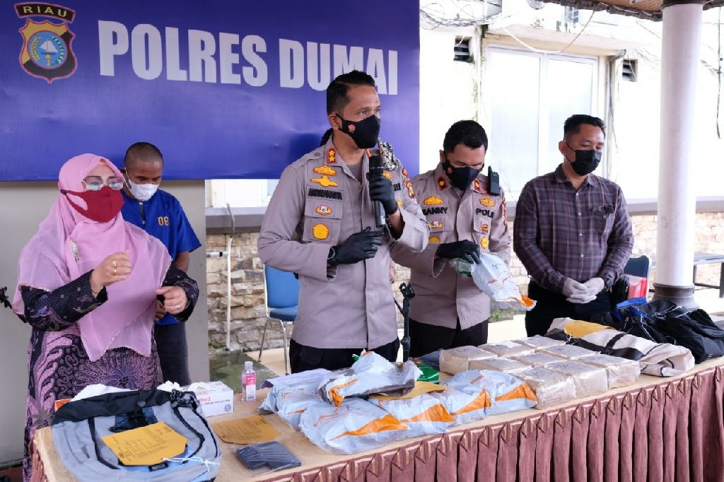DUMAI - Memperingati Hari Bhayangkara ke-75 Tahun 2021 dan Hari Anti Narkotika Internasional (HANI) Tahun 2021, Kepolisian Resor Dumai memberikan hadiah yang indah. Berbekal informasi dari masyarakat, Sat Narkoba Polres Dumai berhasil mengungkap peredaran Narkotika Bukan Tanaman Jenis Shabu seberat 17 Kilogram yang diduga merupakan bagian dari jaringan Internasional, Jumat (25/6/2021) lalu sekira pukul 12.30 WIB.
