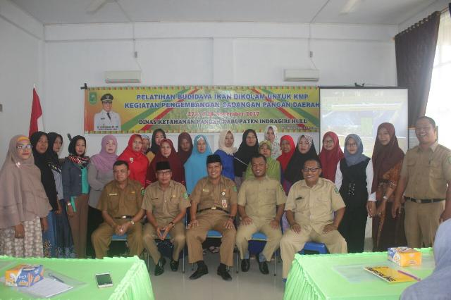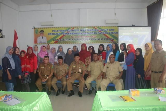 Kepala Dinas Ketahanan Pangan Inhu berfoto bersama usai acara Pelatihan Budidaya Ikan di Kolam untuk KMP